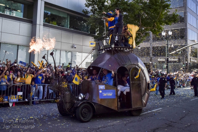 Once again we had the honor of celebrating a Warriors championship by parading the Mayor, her family and MC Hammer through the streets of Oakland on the Snail Car. Hundreds of thousands of Warriors fans came out along with some of our favorite local art cars- a rare but exciting mix of art and sports. Congratulations Oakland! One more thing to be proud of in this crazy town.