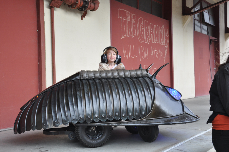 Then came Maker Faire who invited Les Machines de l’ile to present and La Machine’s Giant Ant to play and perform. We were placed right next to them with the Golden Mean Snail Car and the Electrobite and enjoyed seeing the creatures get to know each other. They were exceptionally well received and as always we thoroughly enjoyed sharing our art with the kids (old and new) and learning of La Machine’s new project the Herons Tree.