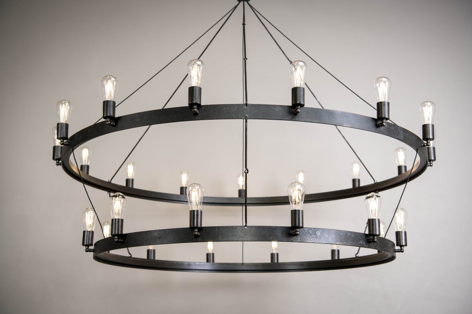 Our Camino fixture is a timeless and elegant design that I took one step further to create the Grand Camino chandelier, it embodies the familiarity of traditional forms and details, but is executed with slightly larger details. We added fewer and larger Med based sockets and thickened the strap just a bit. Fire scale details and deep bronze accents make this a Grand classic.