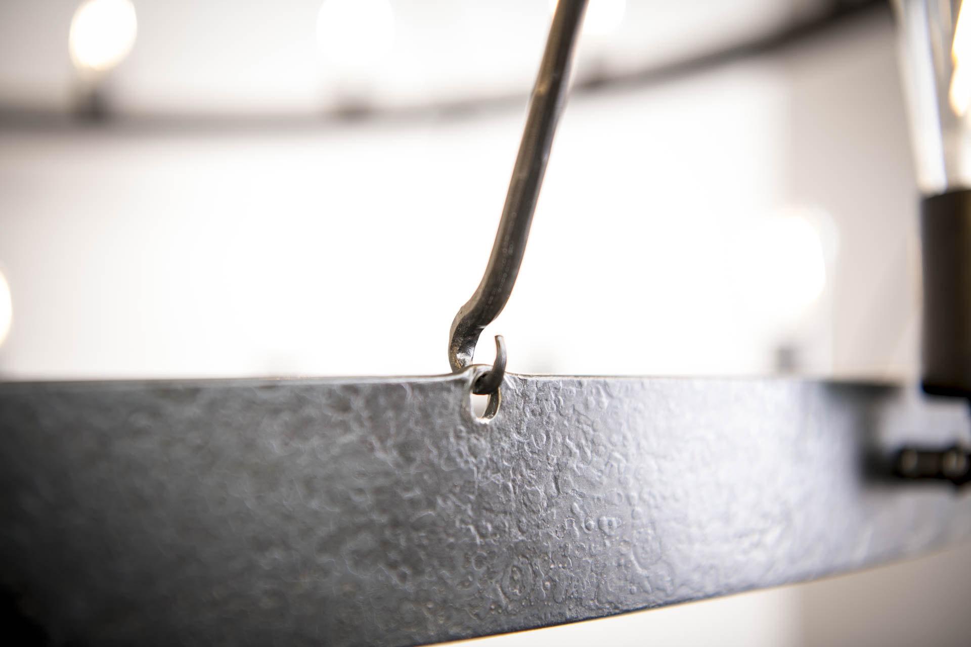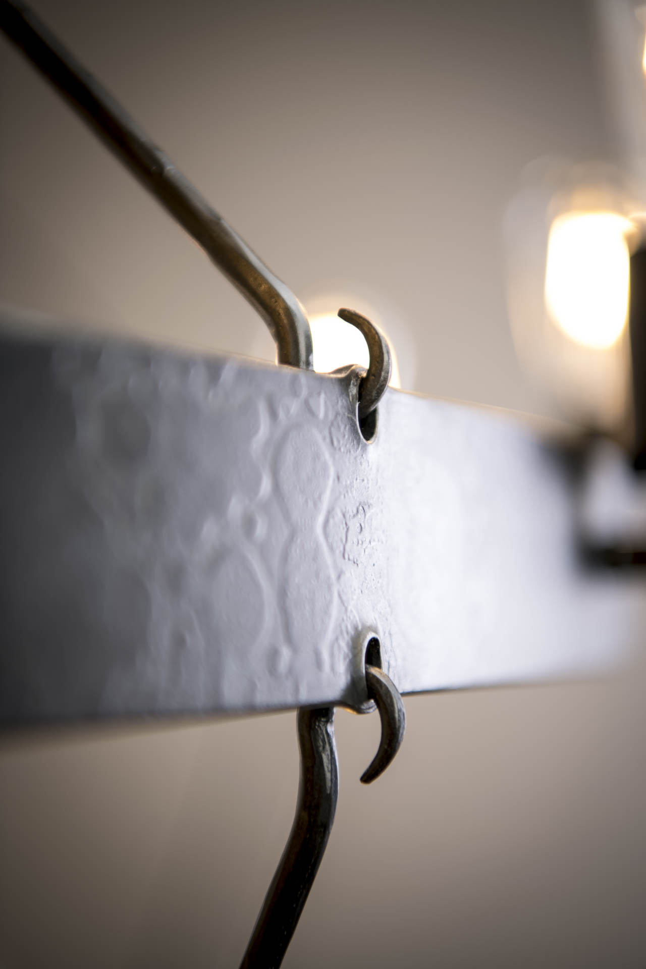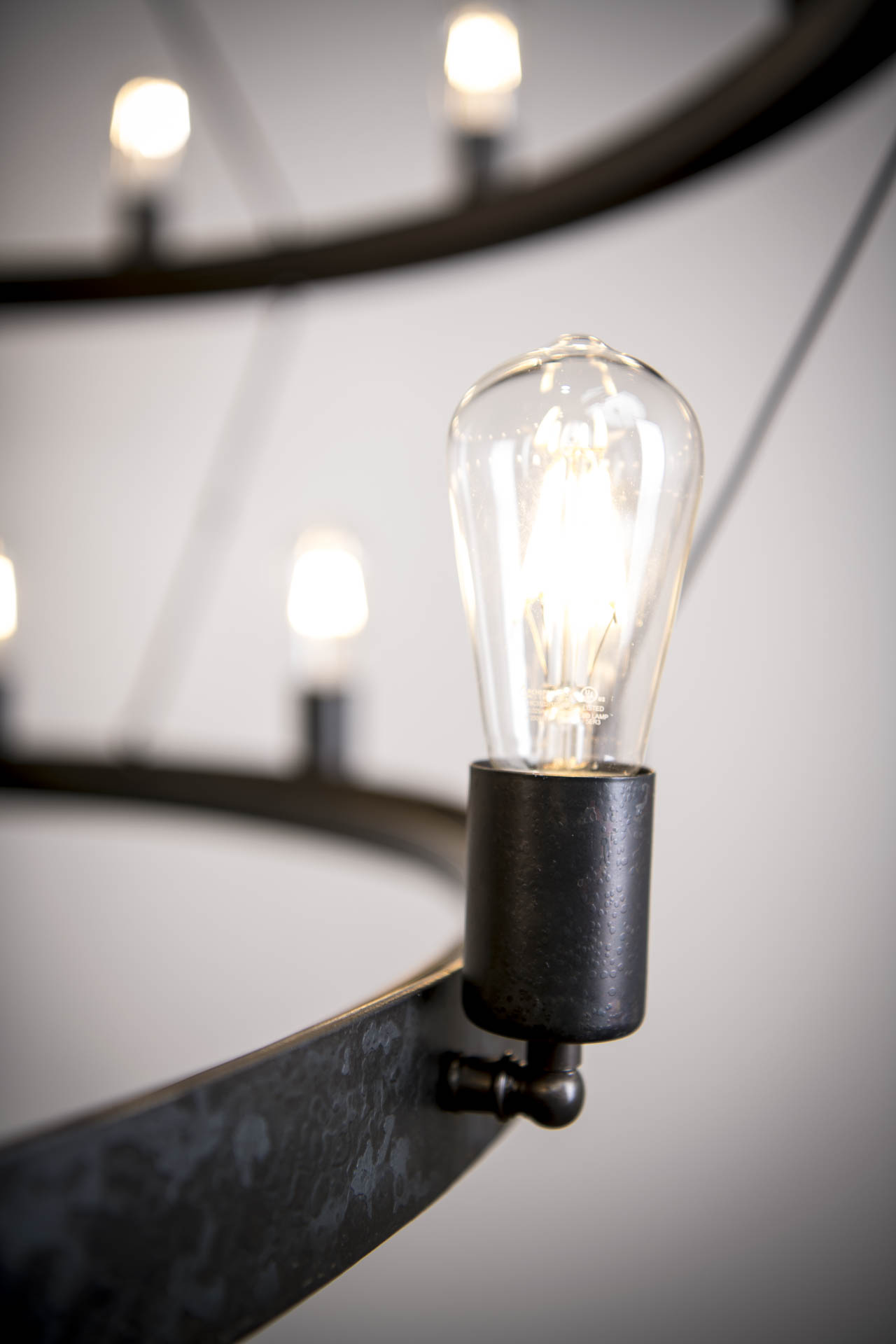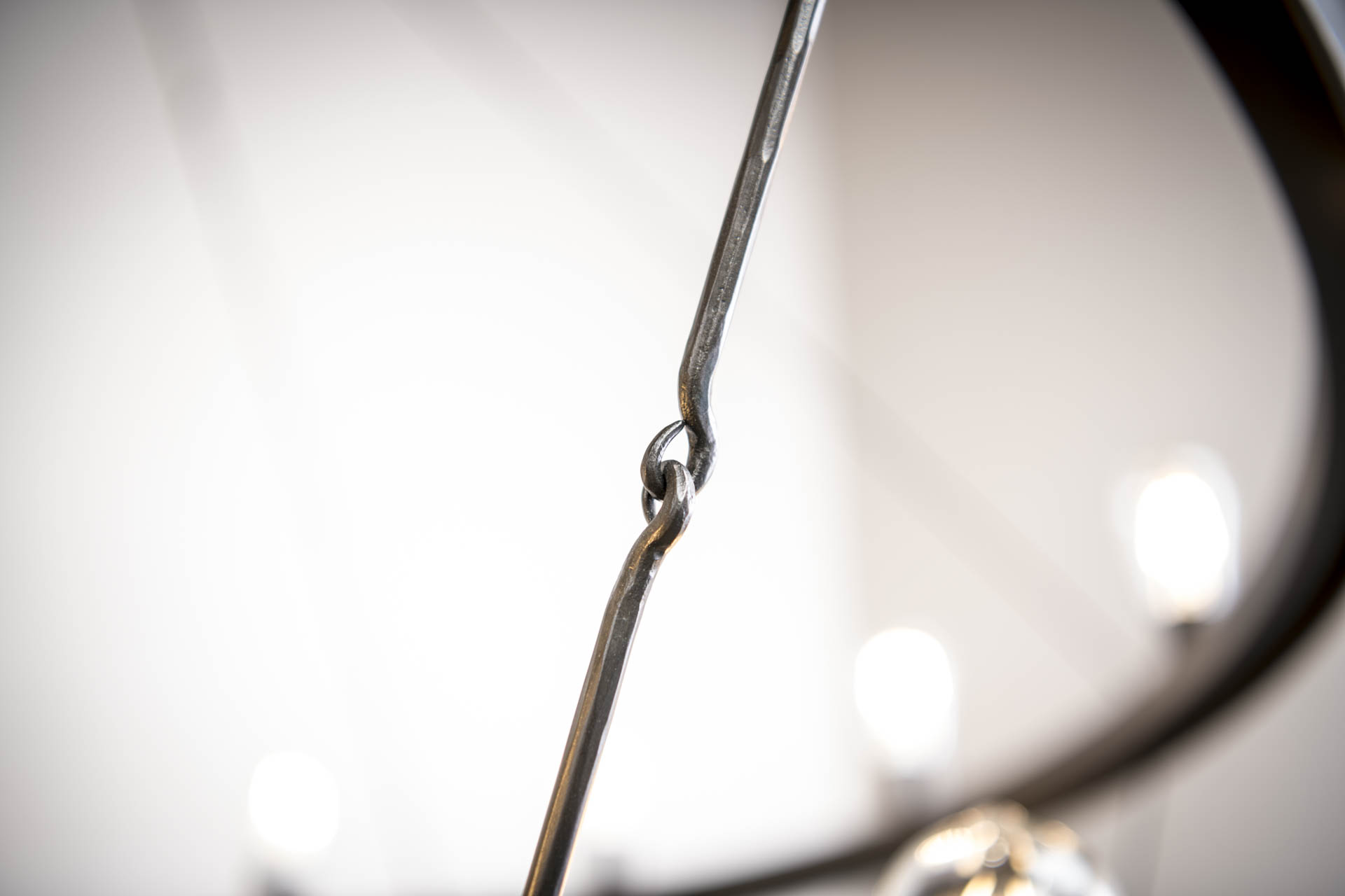 Our Camino fixture is a timeless and elegant design that I took one step further to create the Grand Camino chandelier, it embodies the familiarity of traditional forms and details, but is executed with slightly larger details. We added fewer and larger Med based sockets and thickened the strap just a bit. Fire scale details and deep bronze accents make this a Grand classic.