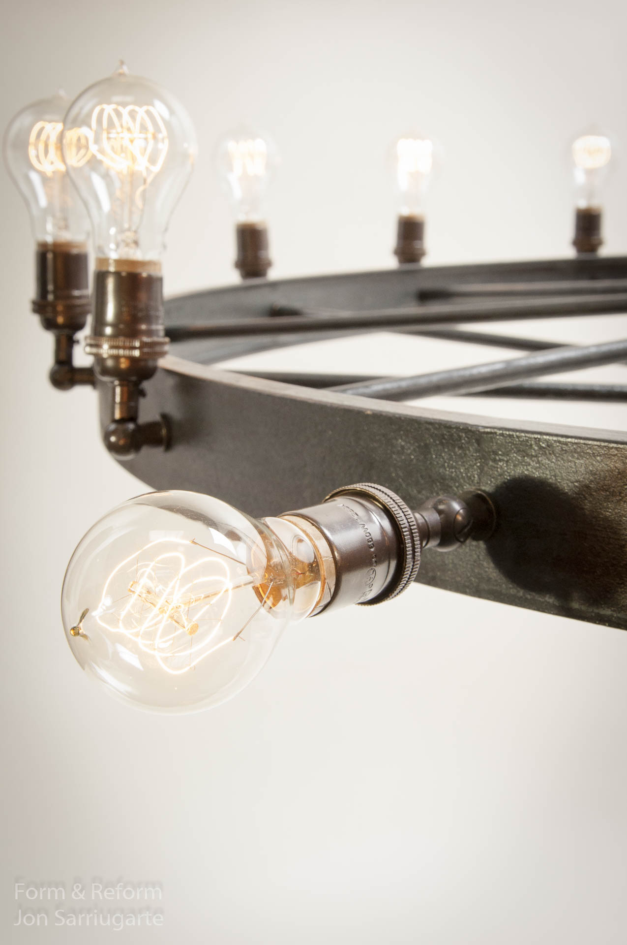 Inspired by the horseless carriage of the 1900’s we found this wheel (or rather the model for this wheel) right here in our shop. It was attached to a WWII era fire extinguisher used to fight fires aboard the flying fortresses of that era. The Horseless Carriage Wheel can be custom built in a variety of sizes. The spokes come in two styles – offset and flat. The sockets can be fixed or adjustable.