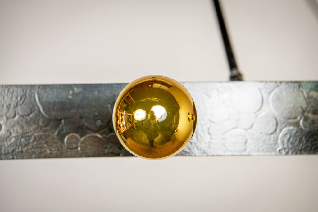Winthrop Brass is a chandelier in Standish Hall at Winthrop House, Harvard; a lighting fixture by Jon Sarriugarte at Form & Reform.