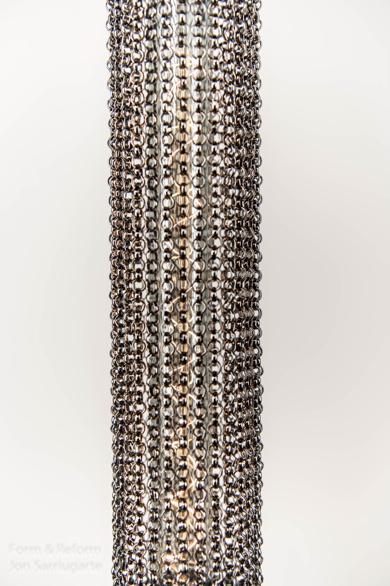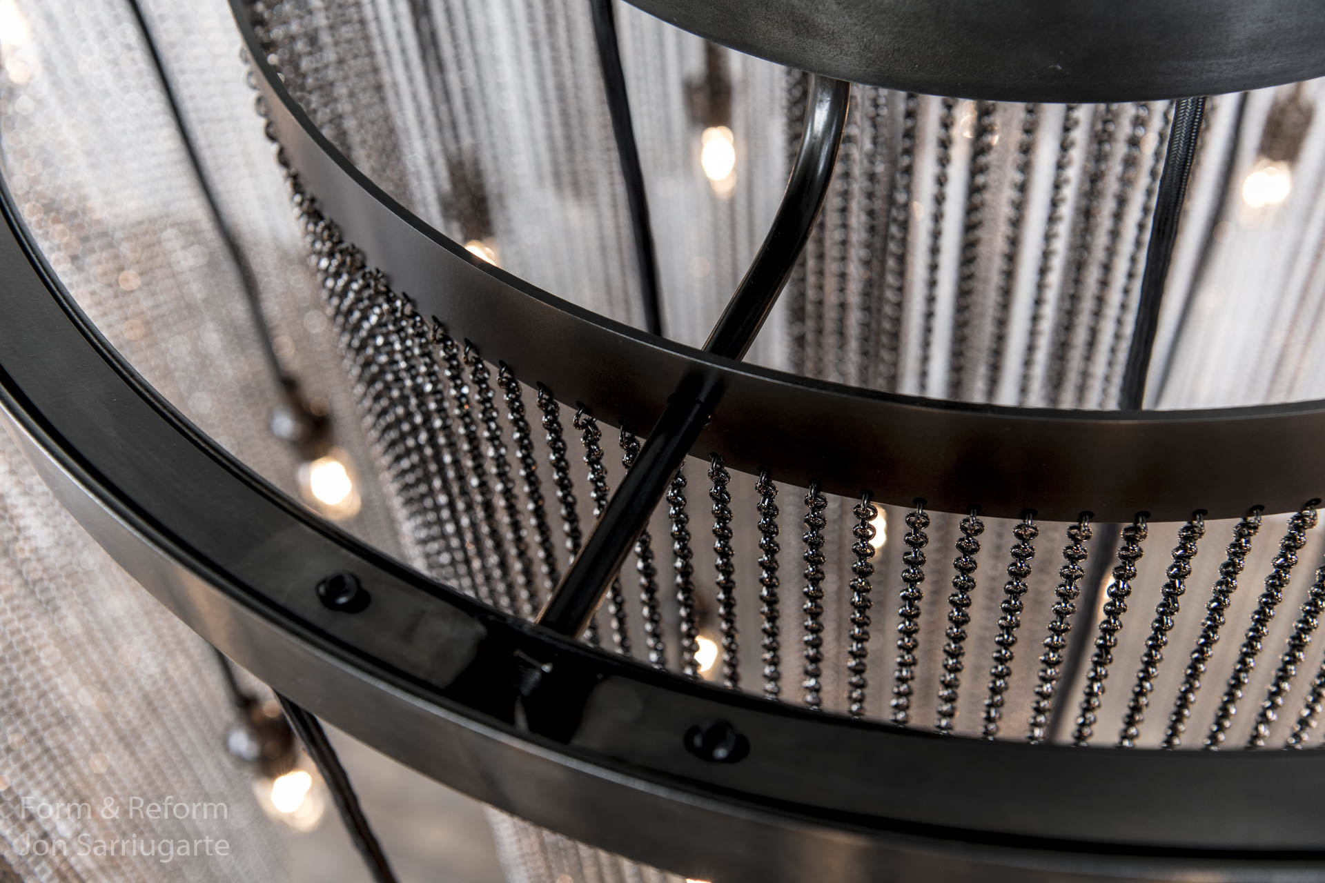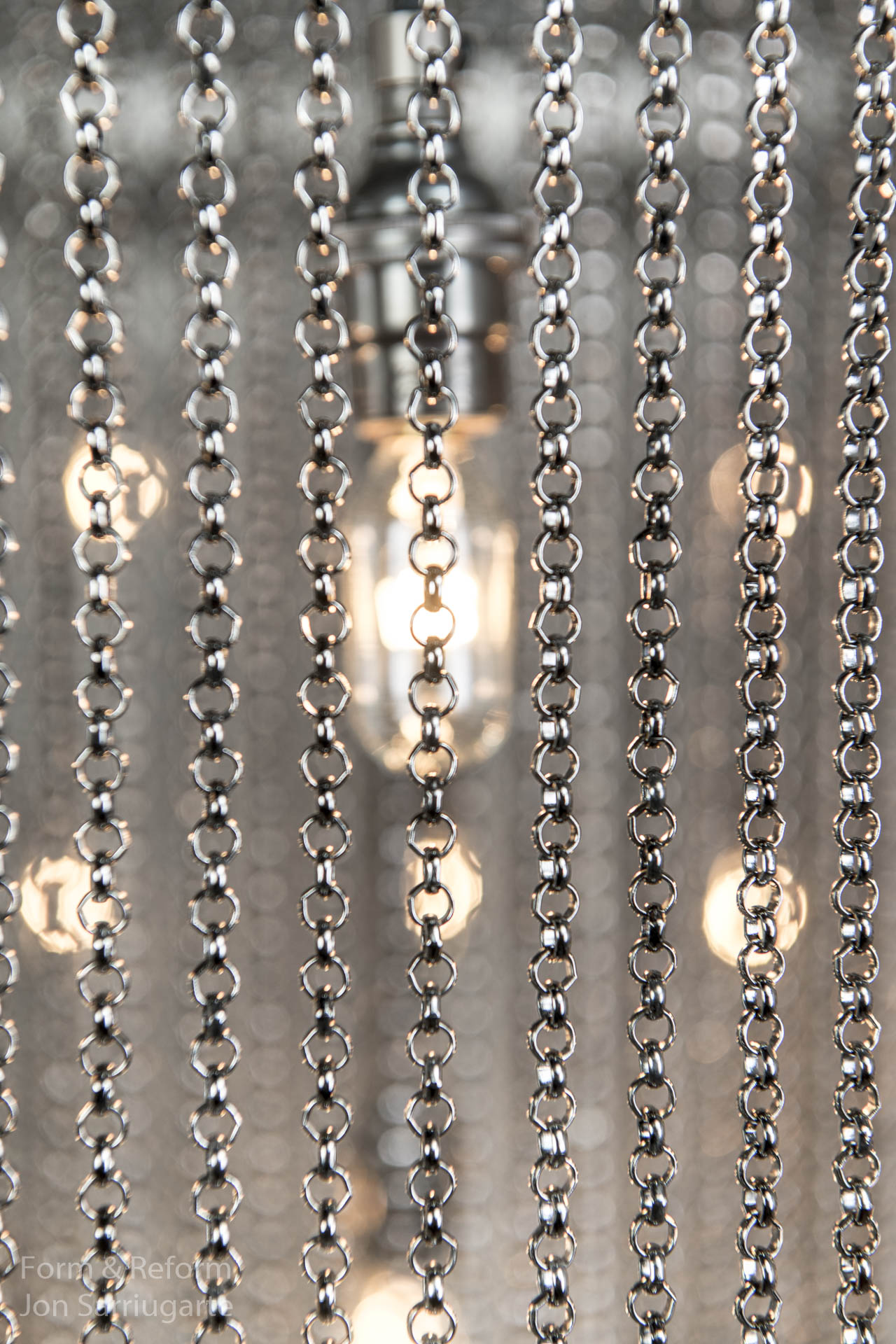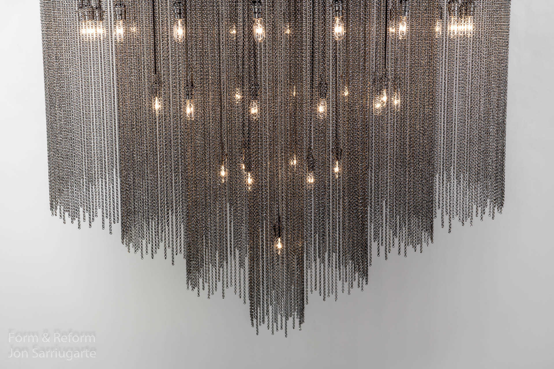 An ephemeral chandelier that casts beautifully textured shadows created by filtering light through layers of delicate jewelry chain.