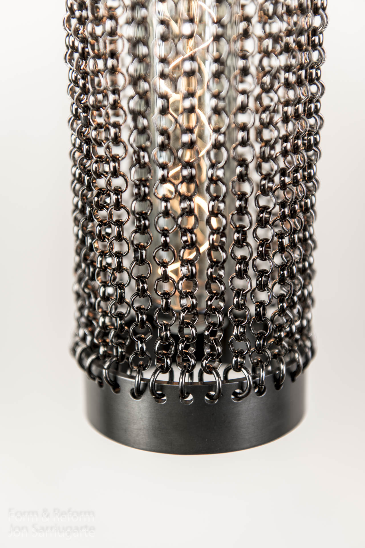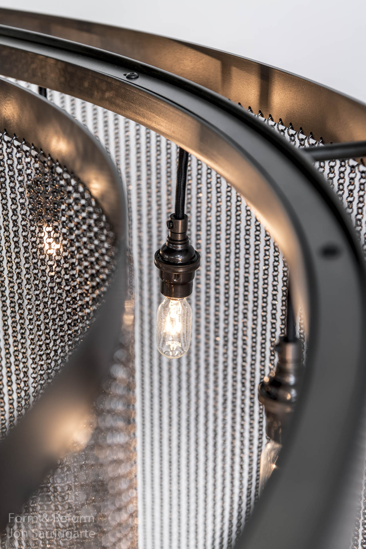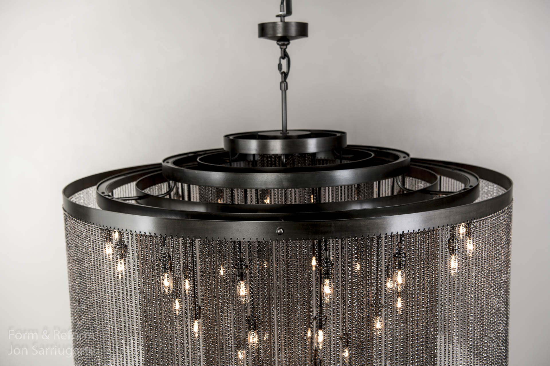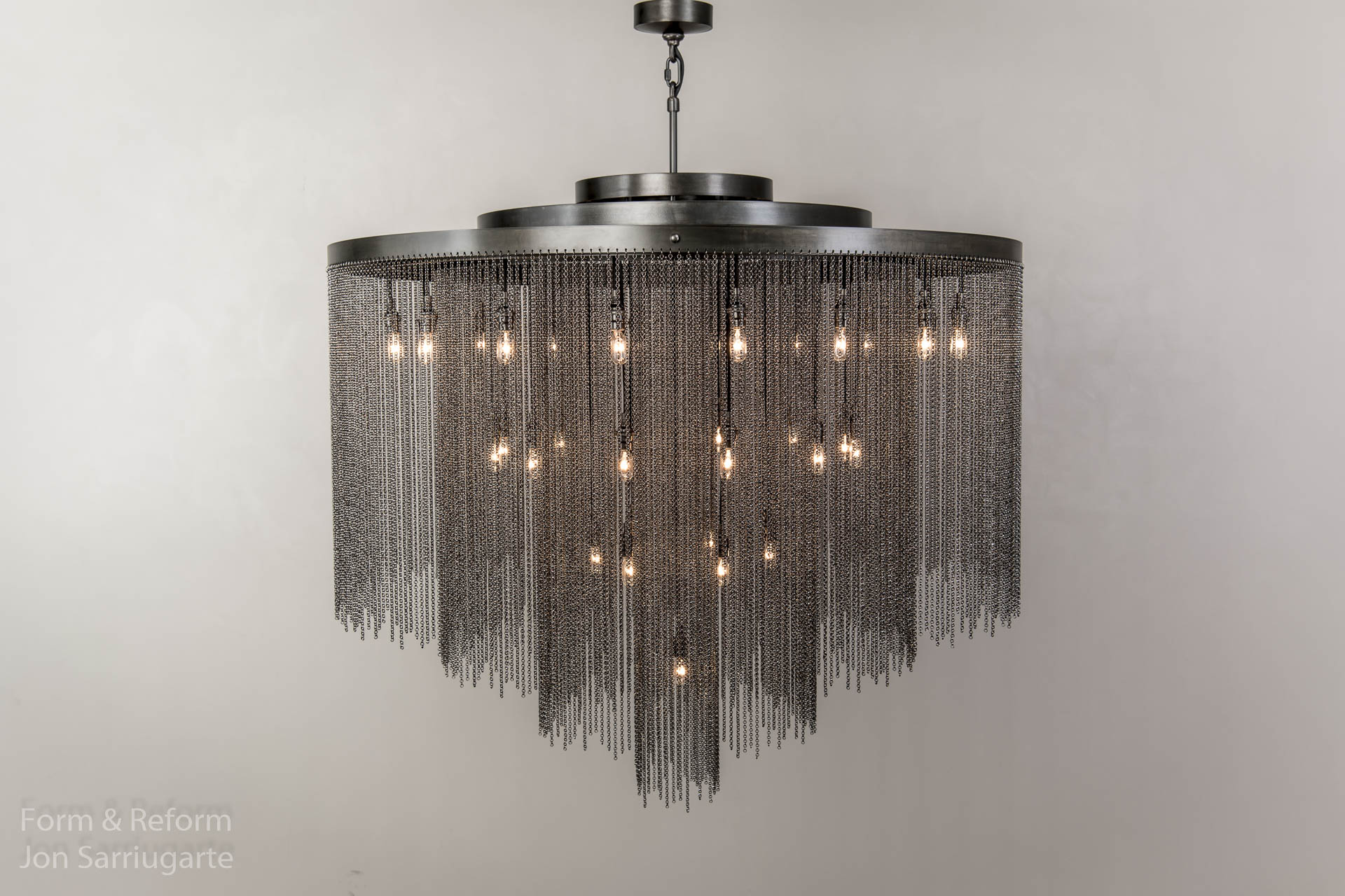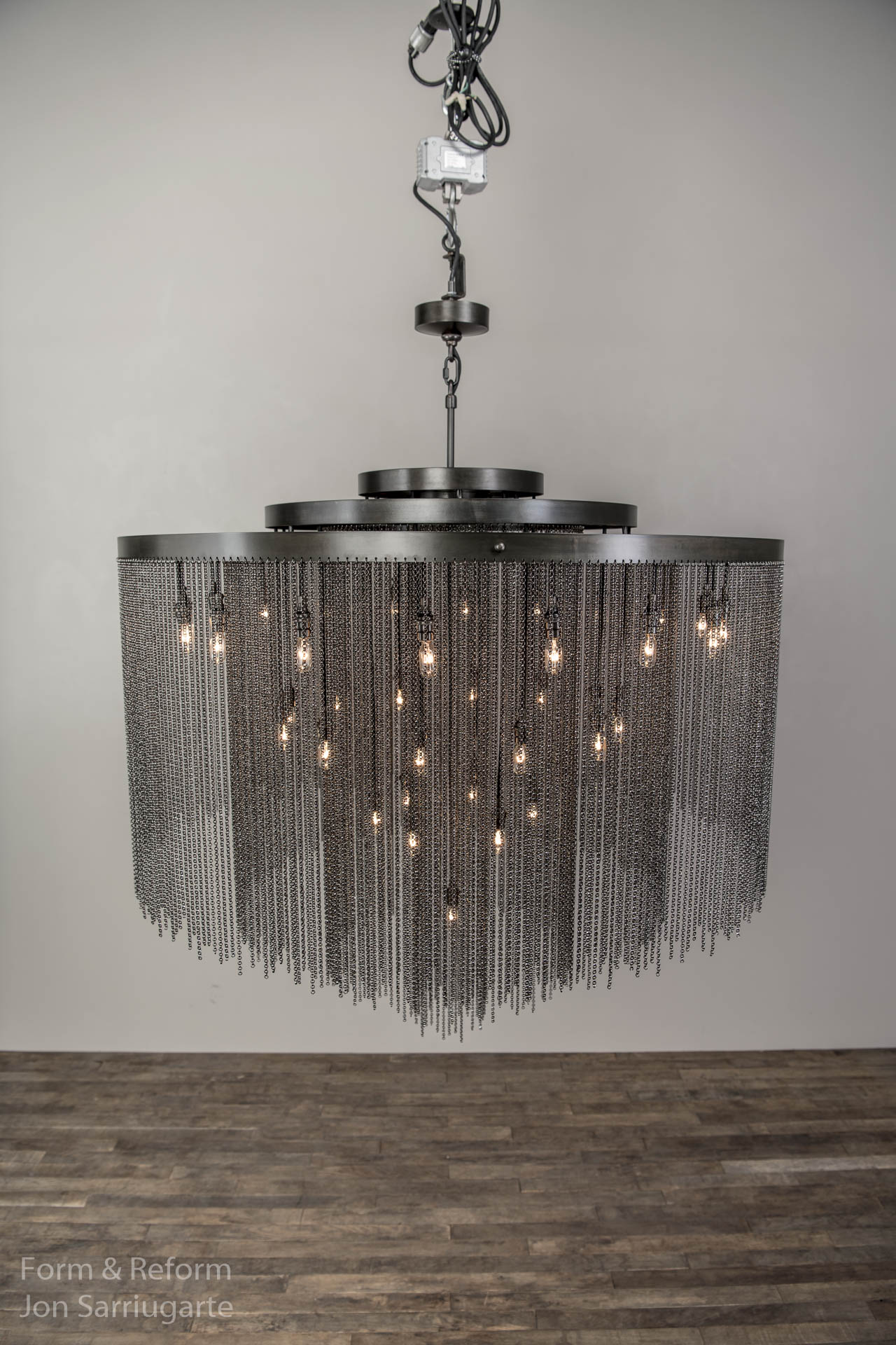 An ephemeral chandelier that casts beautifully textured shadows created by filtering light through layers of delicate jewelry chain.