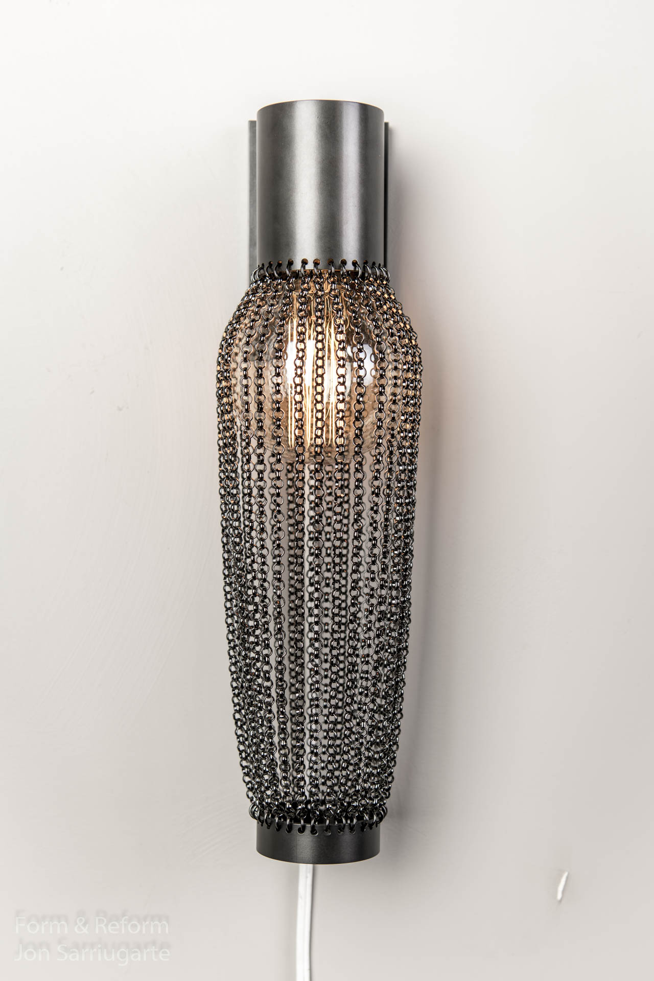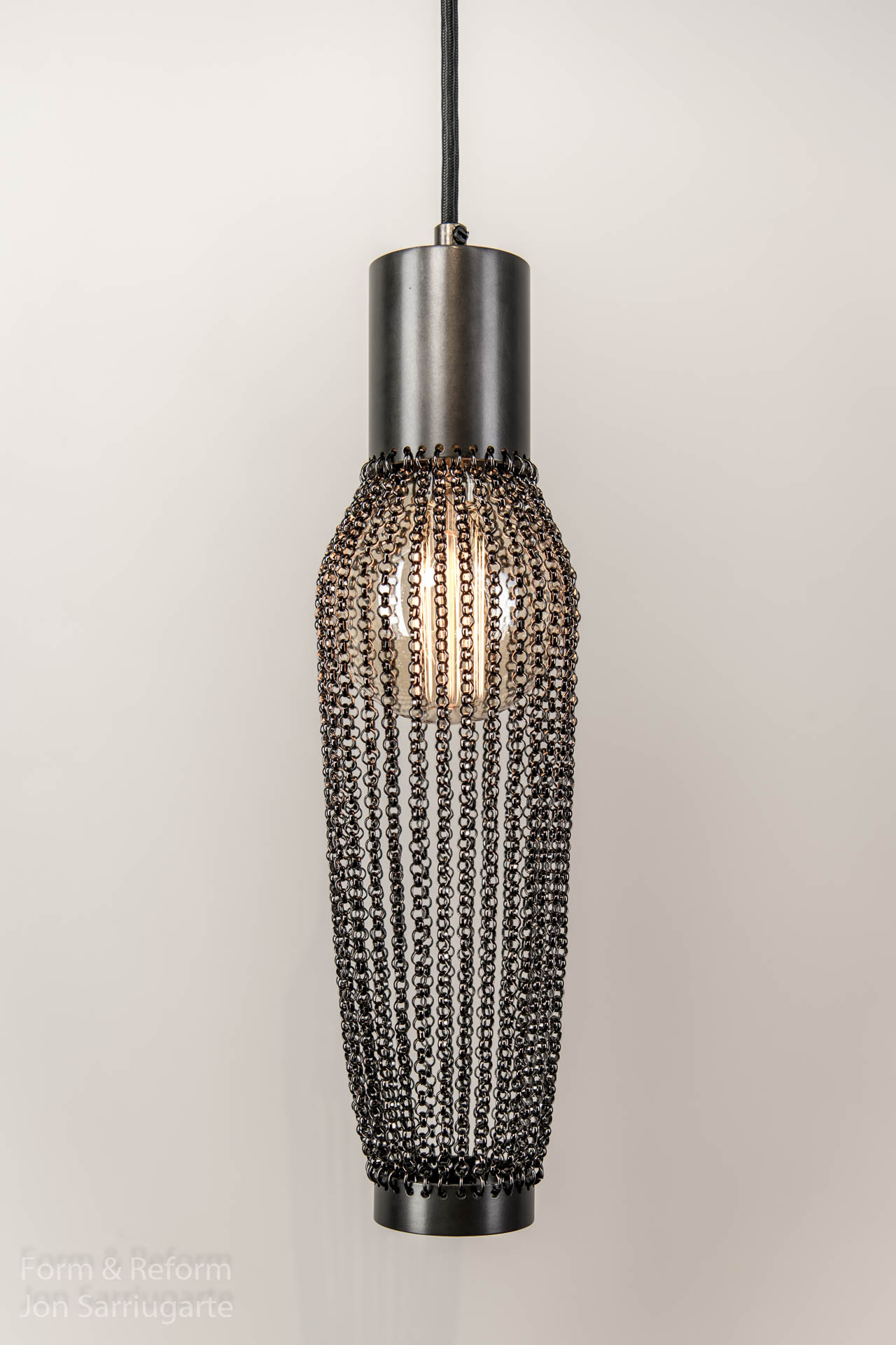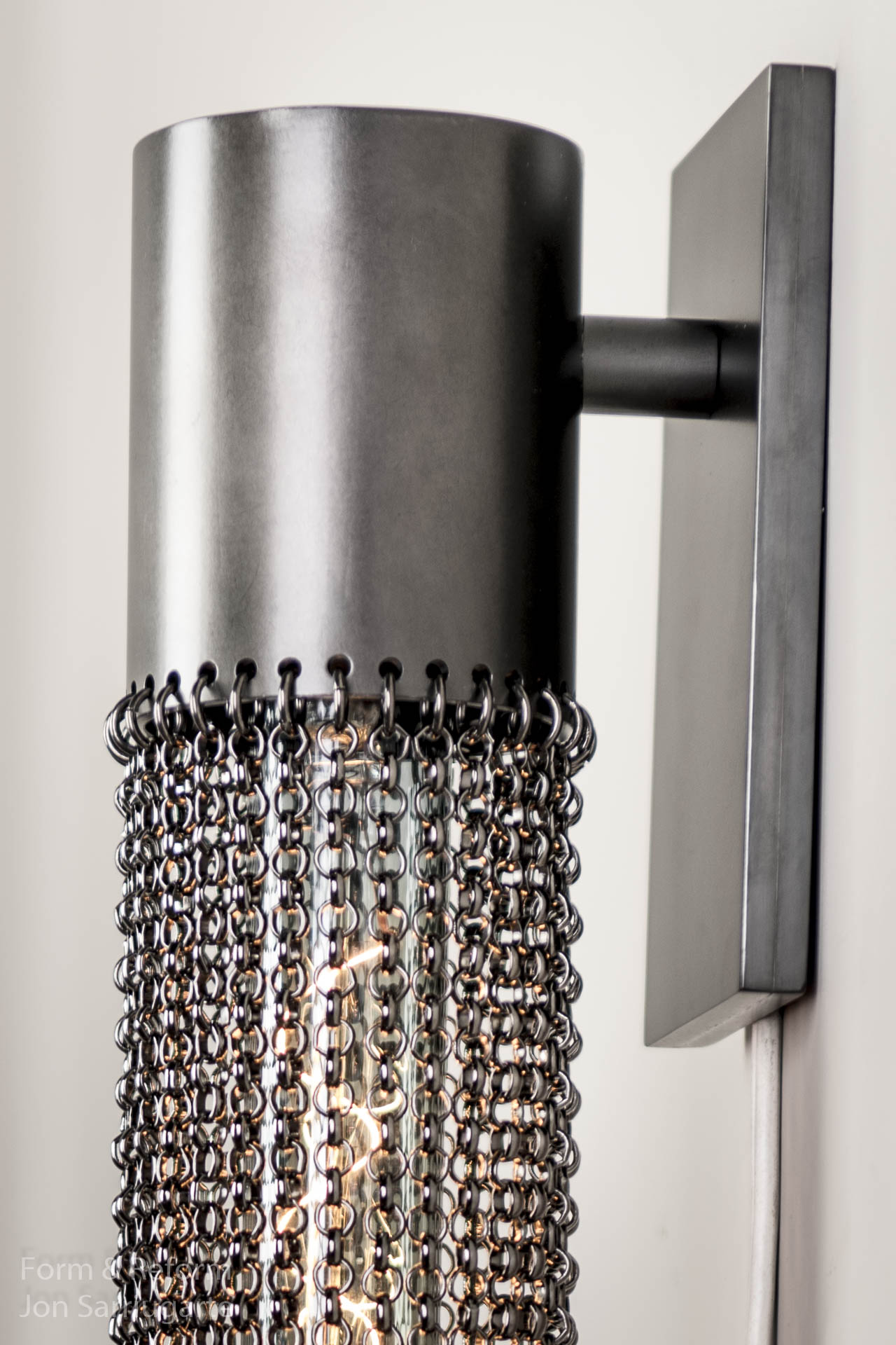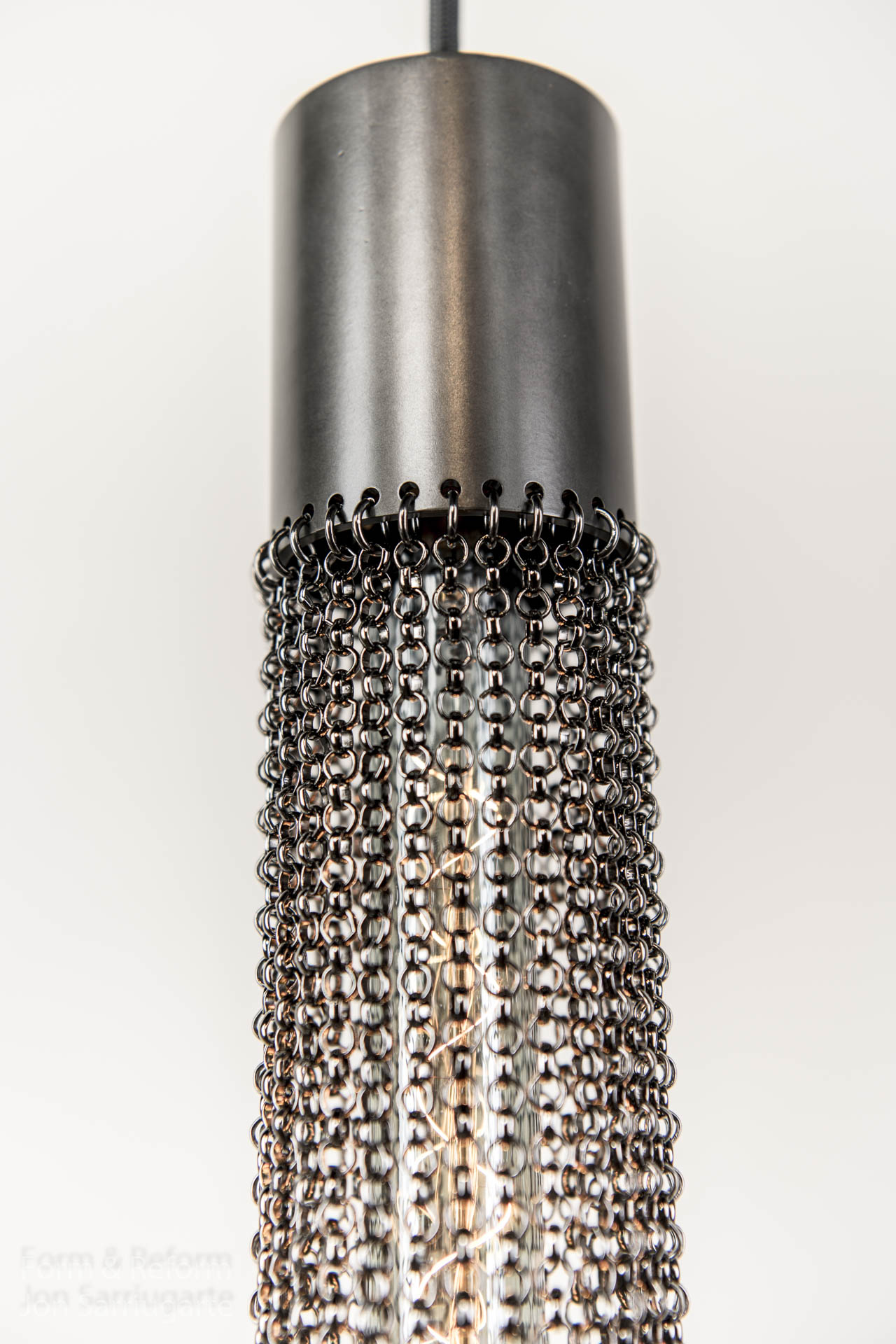 An ephemeral chandelier that casts beautifully textured shadows created by filtering light through layers of delicate jewelry chain.