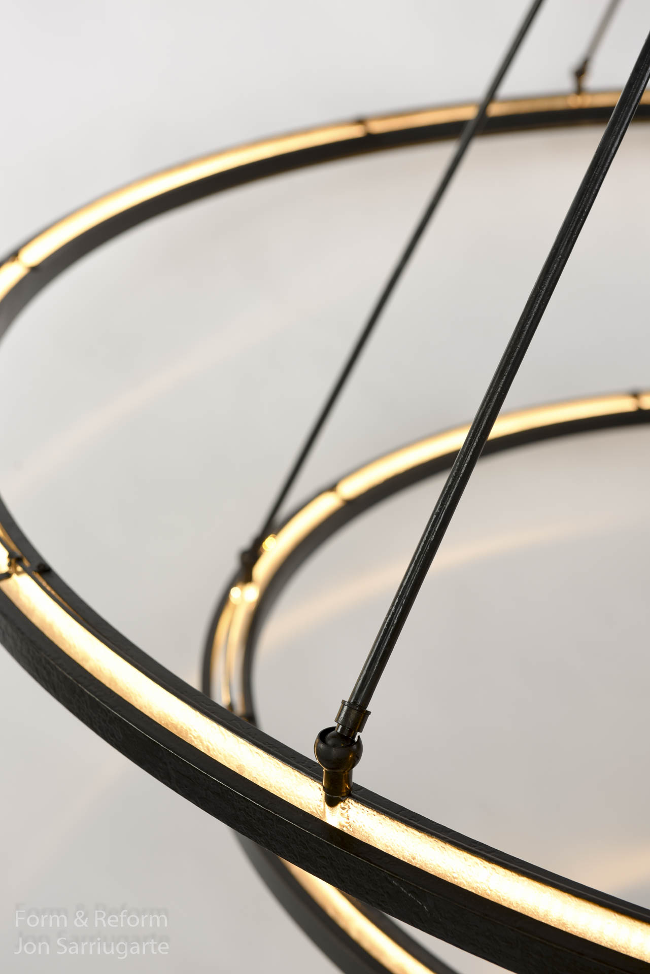 The simplicity and elegance of the Ray Collection is underscored by it’s innovative technology — Warm, subtle lighting from eco-friendly LED’s illuminate the beautiful texture of the hand forged steel.