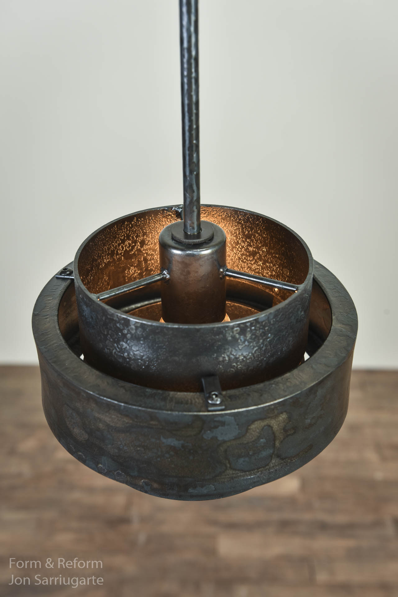 The simplicity and elegance of the Ray Collection is underscored by it’s innovative technology — Warm, subtle lighting from eco-friendly LED’s illuminate the beautiful texture of the hand forged steel. This 8" pendant was designed to have a larger range of light output than our smaller version. It can be dimmed to provide an ambient glow or brightened for use as task lighting.