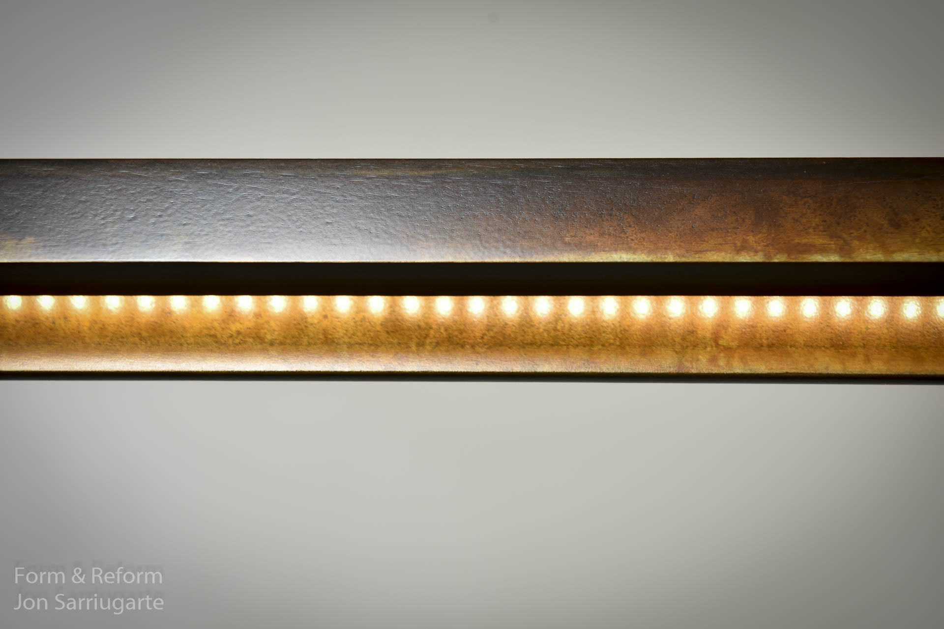 The simplicity and elegance of the Ray Collection is underscored by it’s innovative technology — Warm, subtle lighting from eco-friendly LED’s illuminate the beautiful texture of the hand forged steel.