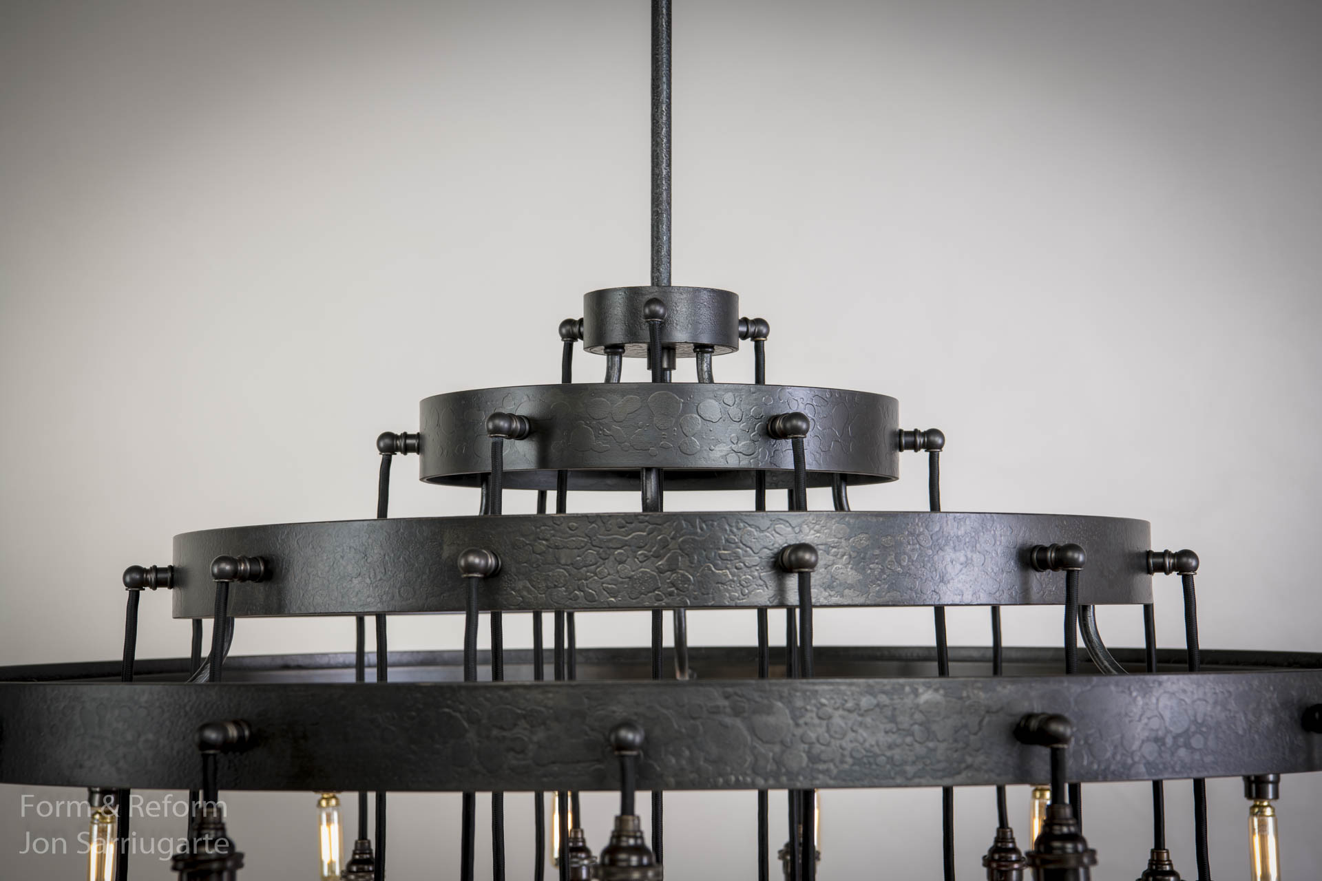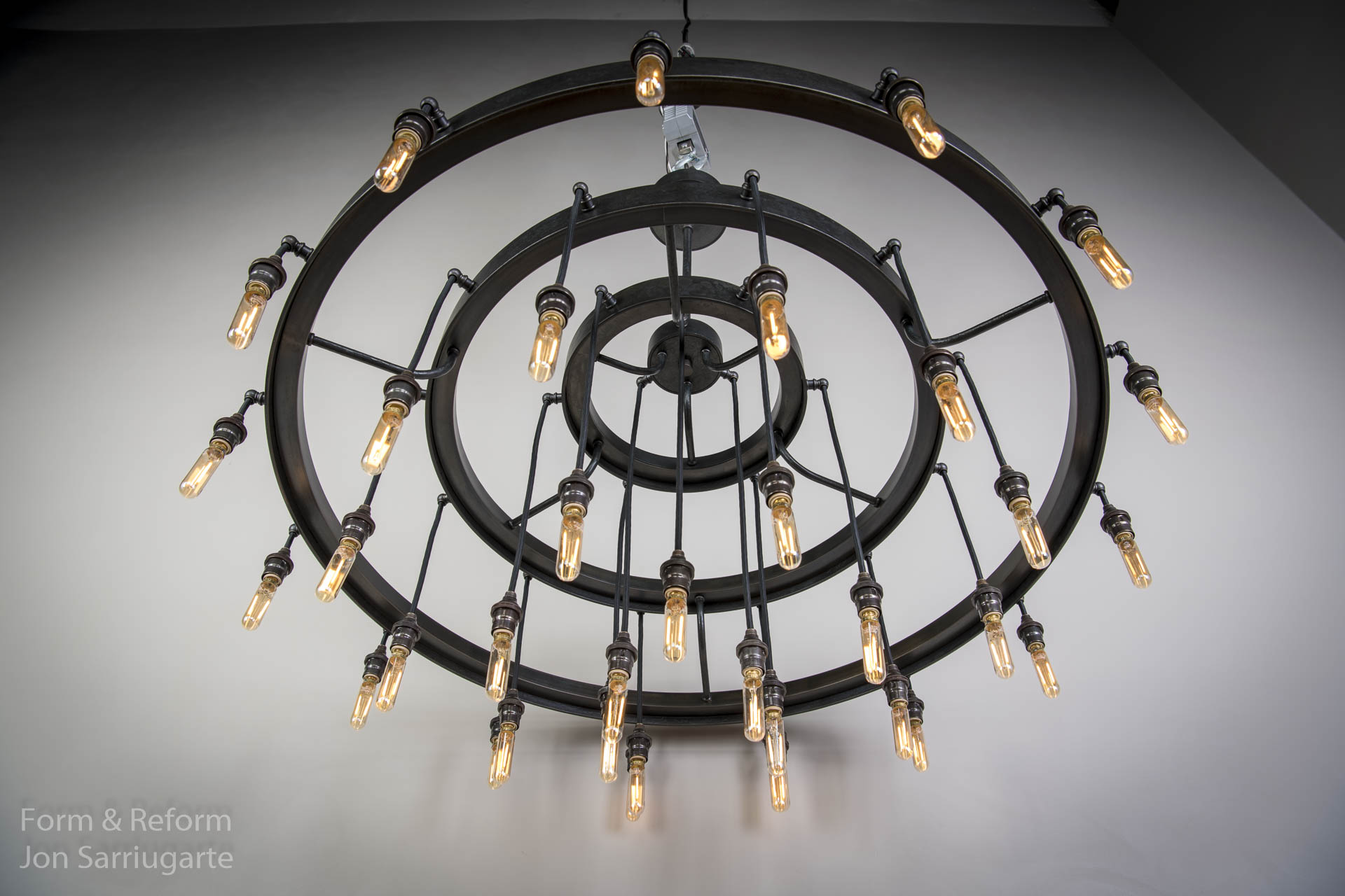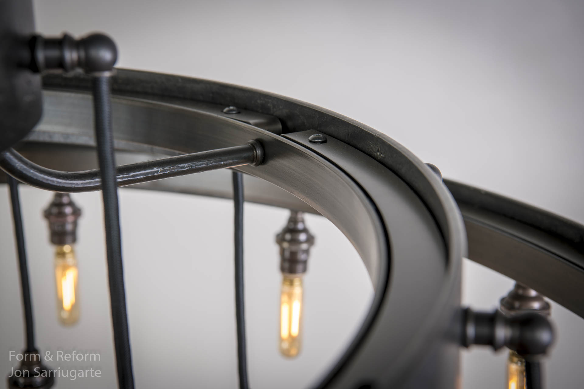 My wife wanted a simple pendant for our house so I made her the Roswell. This light is in our kitchen stairwell and is viewed from above as well as below. I wanted the feel of the Star 3- tier without the mass, we live in a craftsman home with 9.5ft ceilings. I wanted the lights to form a hanging ball below and I used the classic but simple metalwork above. The connections between the rings are what finally pulled this light together. Looking forward to many close encounters with this light over the years to come.