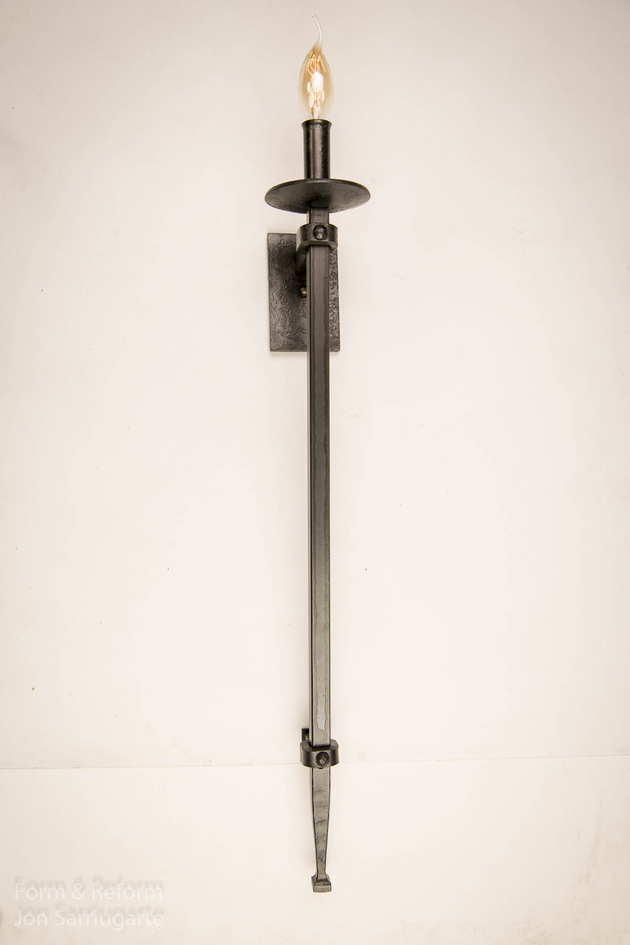 The Spanish Delgado Line is to Celine as Celine is to Spanish Revival. In this iteration of our Spanish Colonial Revival style lights we've simplified the torches with straight tapering (not twisting) and added some chain connection points to the round chandeliers and flat strap to the rectangular. This slimmer version of the Spanish Revival line maintains the feel of popular 20th century hand forged iron adornments without extra embellishing.
