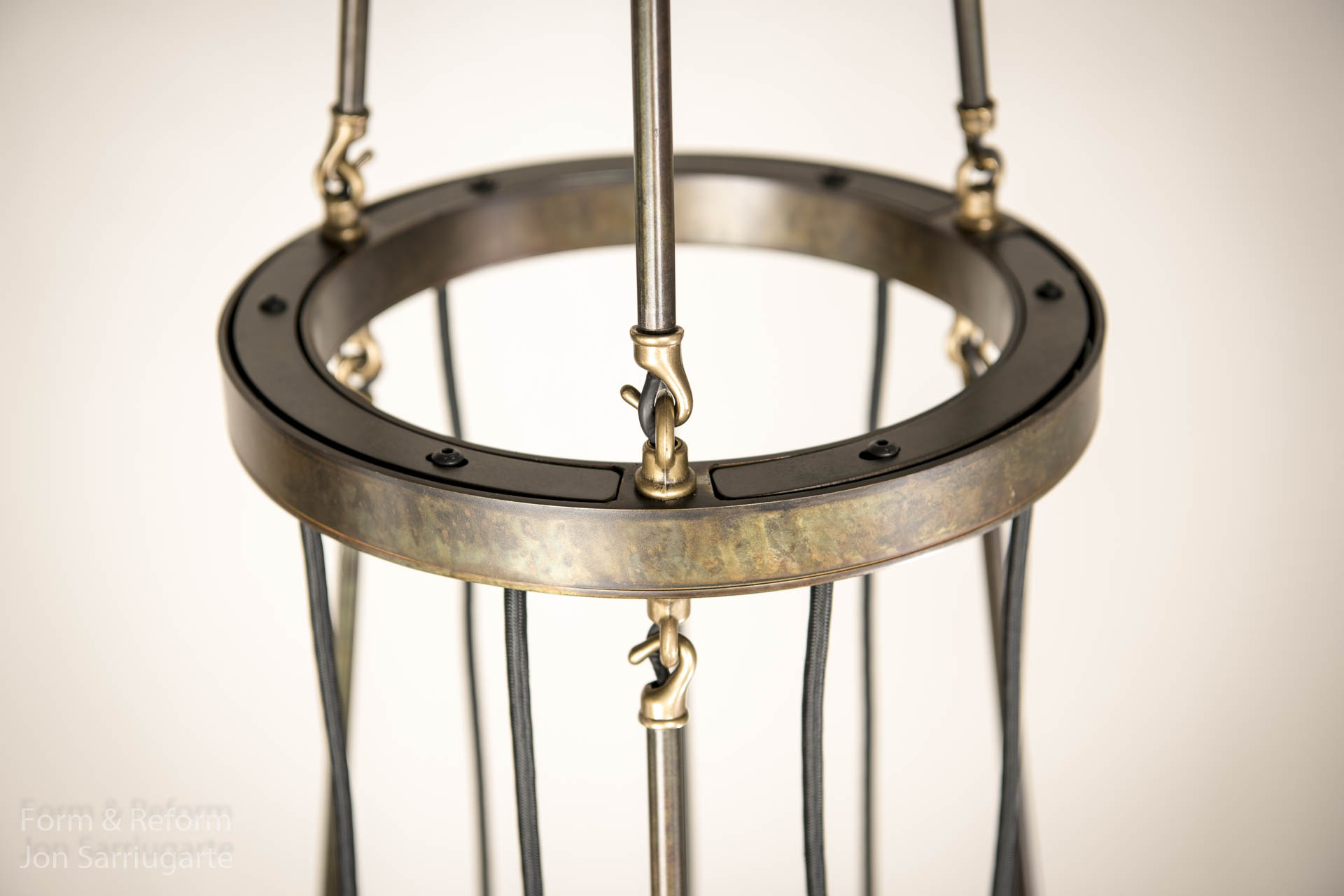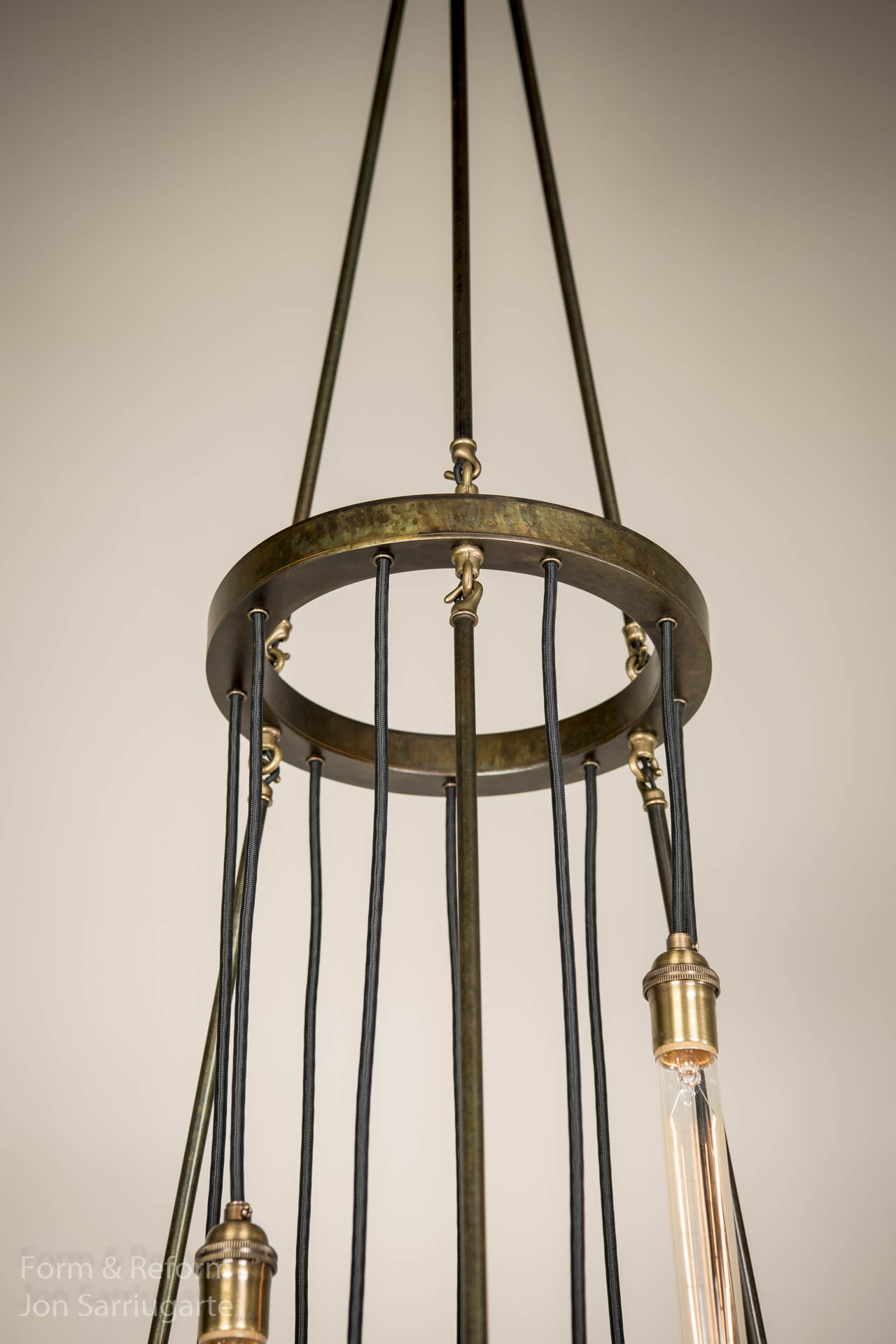 The interior to the grandiose Star chandelier, this a delicate vertical light great for stairwells and tall vertical spaces.
