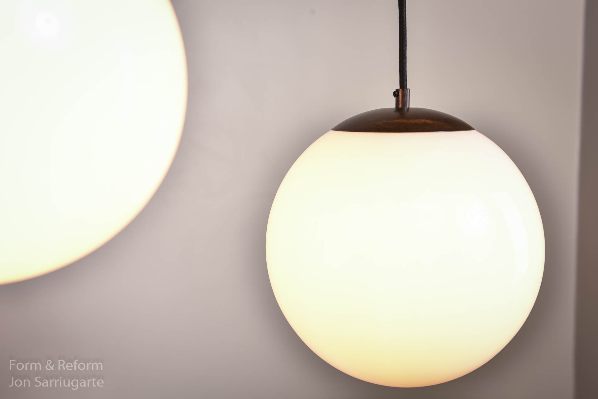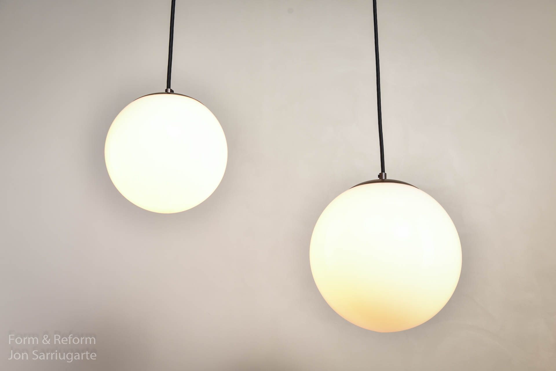 This mid-century modern pendant is a simple with frosted globes. See the rest of the Suspension Globe Collection.