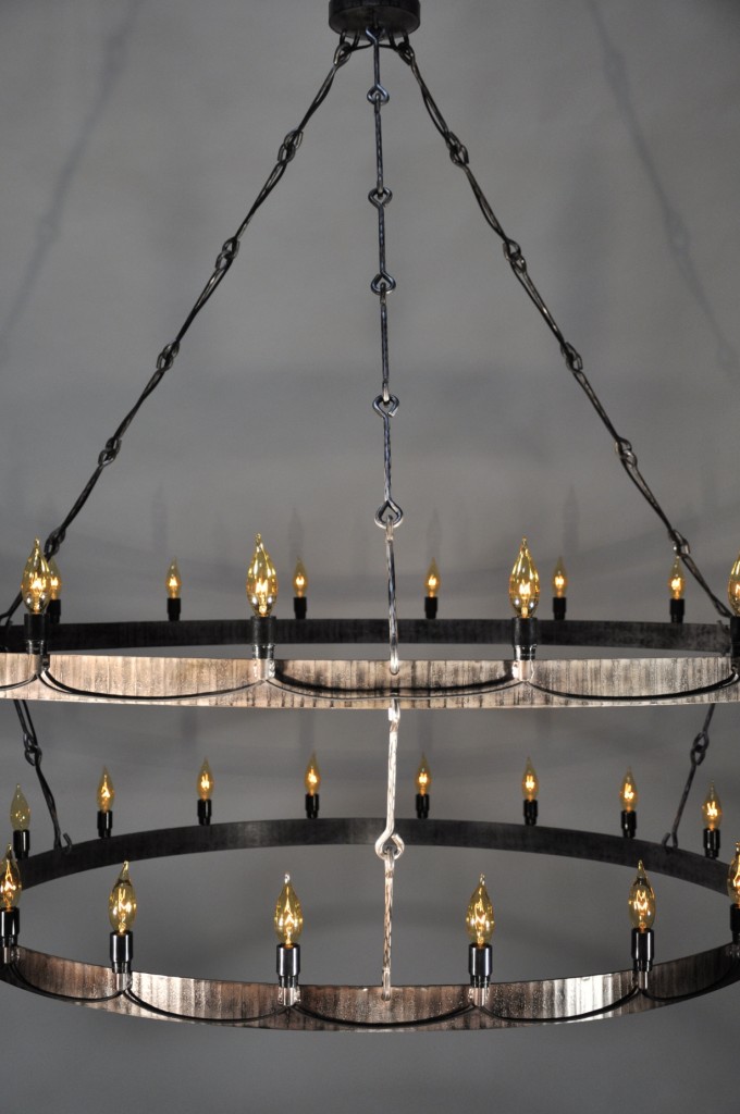 Custom Spaces also worked on the project, and posted these images featuring some of the dining room’s Gioia style chandeliers with I-Beam Service Rail in background (left) and over-bar lights (right). Photo credit: Kim Lucian.
